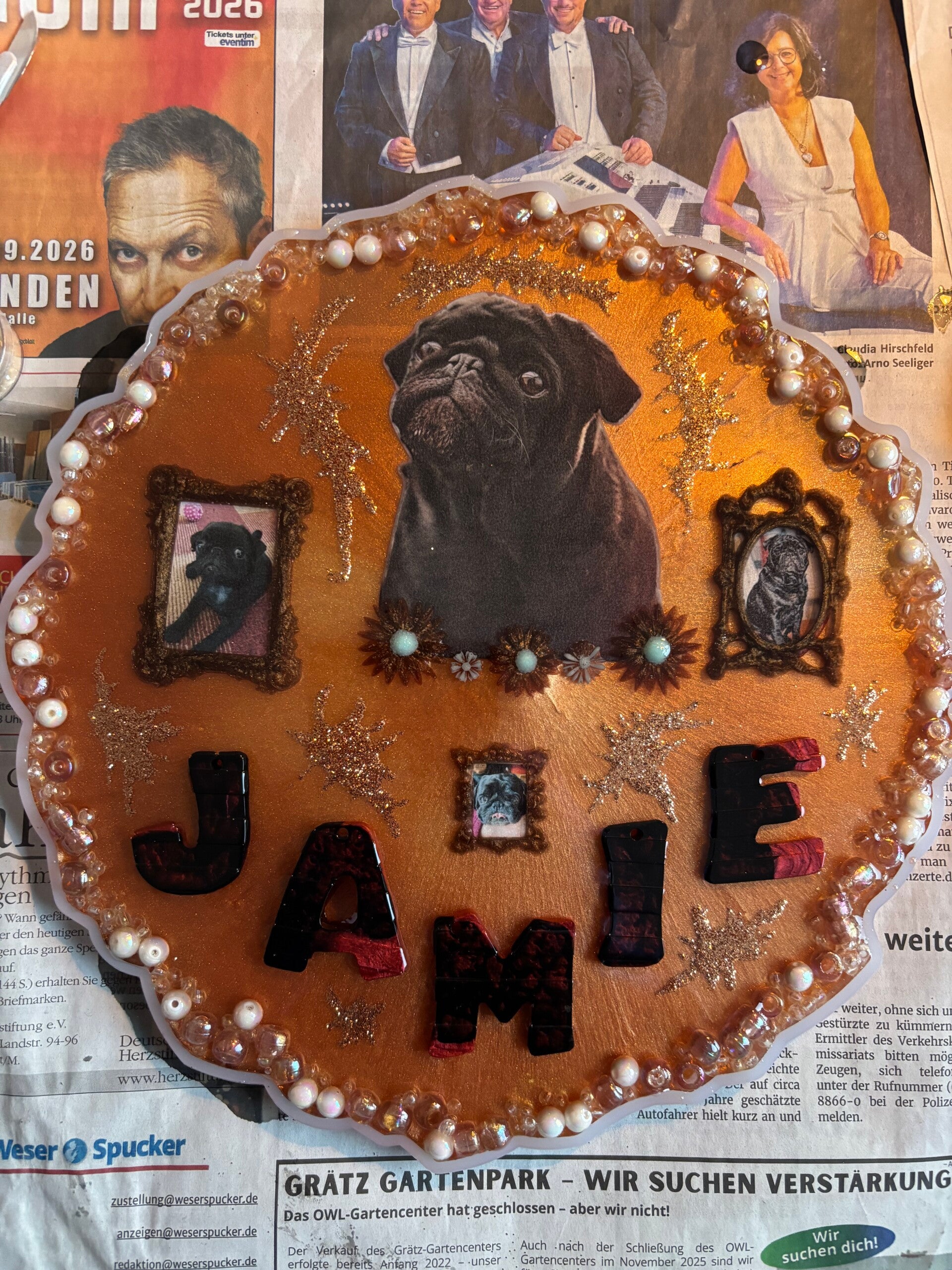 Ihr habt eine Idee oder seht etwas Tolles, dass ihr haben möchtet, dann schreibt mich über das Kontaktformular an! Wenn ihr schon etwas über diese Seite gefunden habt, fügt die Artikelnummer dazu (müsst ihr aber nicht). Der Austausch erfolgt über Email oder WhatsApp, das ist persönlich. Eingegossen werden können Sachen wie Fotos, Schriften, aber auch Tierfell, Haare, Zähne, Krallen, Hufe und Asche.